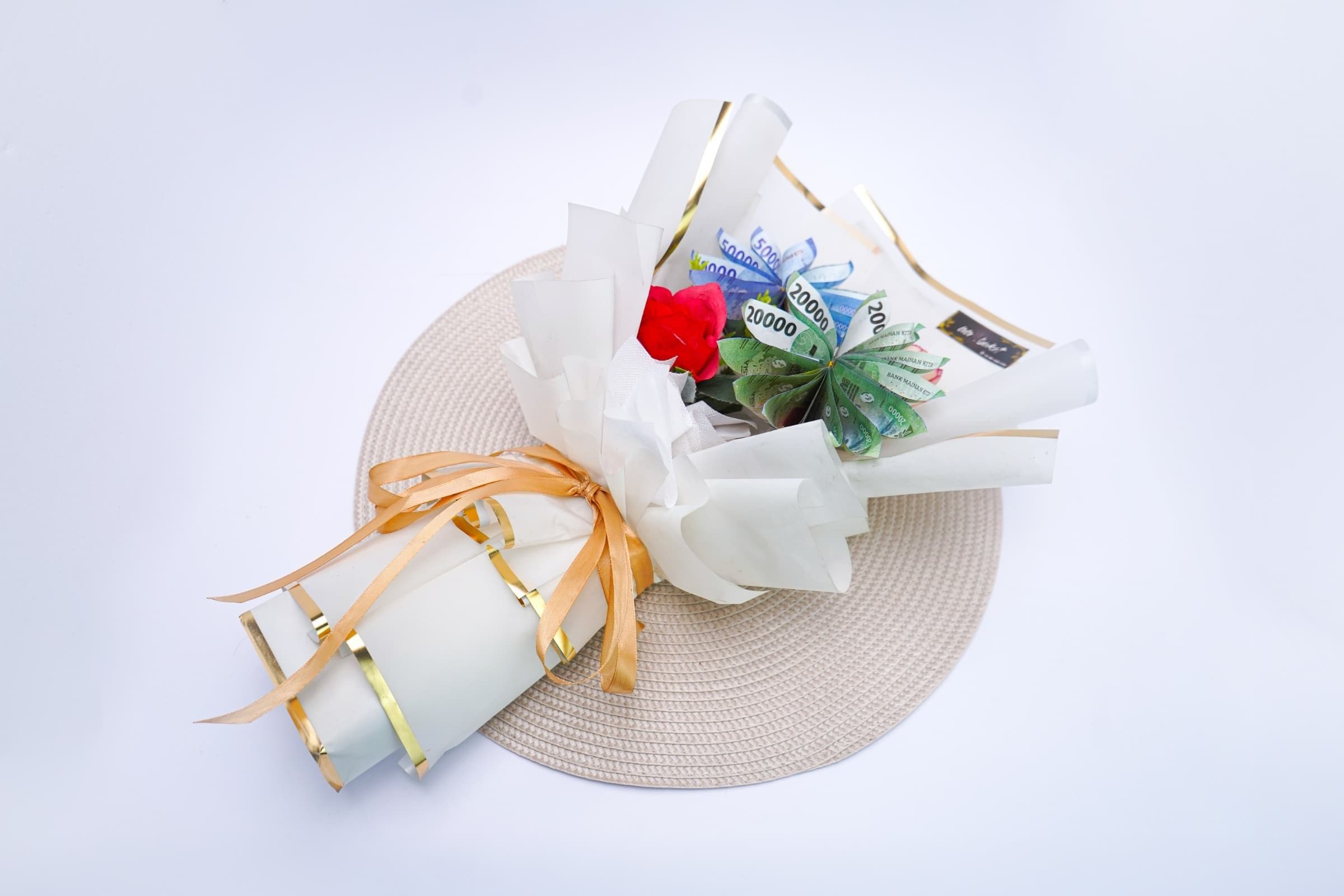 Buket uang eksklusif untuk hadiah ulang tahun, wisuda, atau momen istimewa lainnya. Perpaduan cantik antara bunga dan uang kertas yang dirangkai elegan. Siap kirim dengan tampilan mewah dan penuh kejutan!