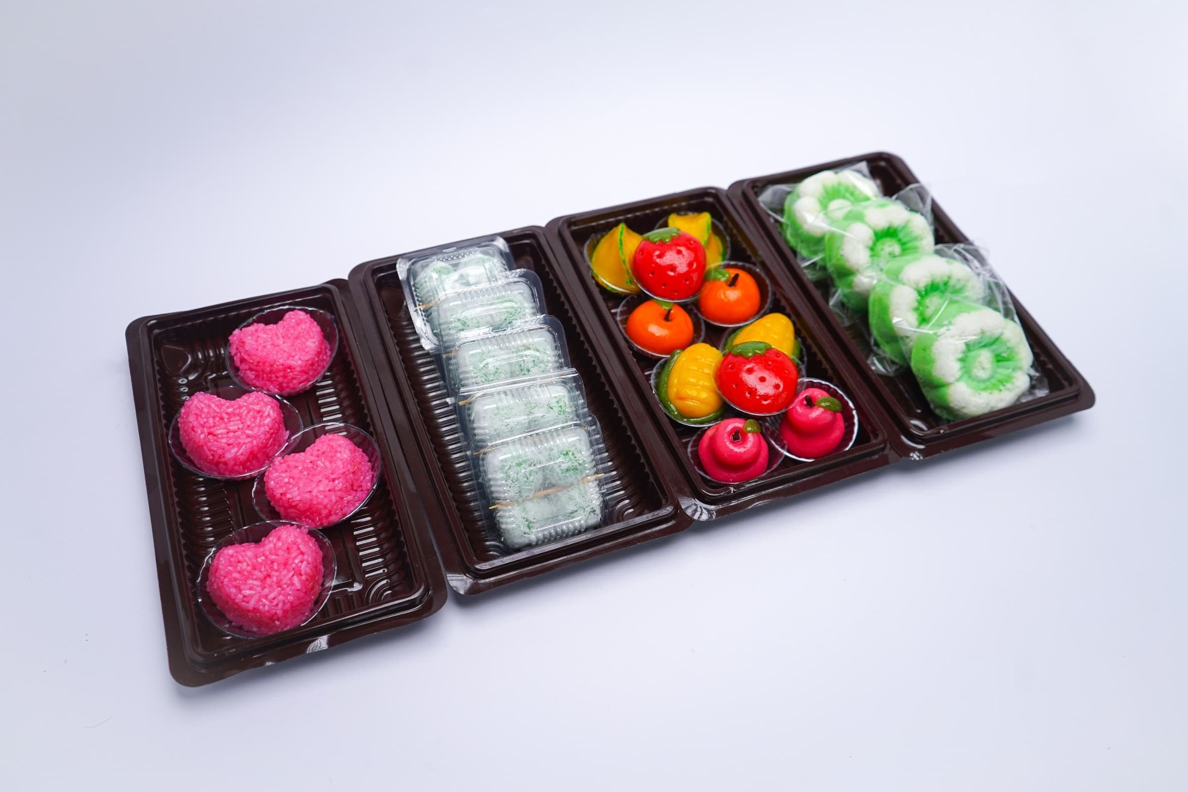 Nikmati cita rasa khas nusantara dengan aneka jajanan pasar tradisional. Tersedia pilihan kue seperti Kueku buah dengan isian kacang hijau yang lembut, klepon dengan isian gula merah cair yang lumer di mulut, serta putu ayu yang lembut dilengkapi taburan kelapa parut. Cocok untuk berbagai acara atau cemilan.