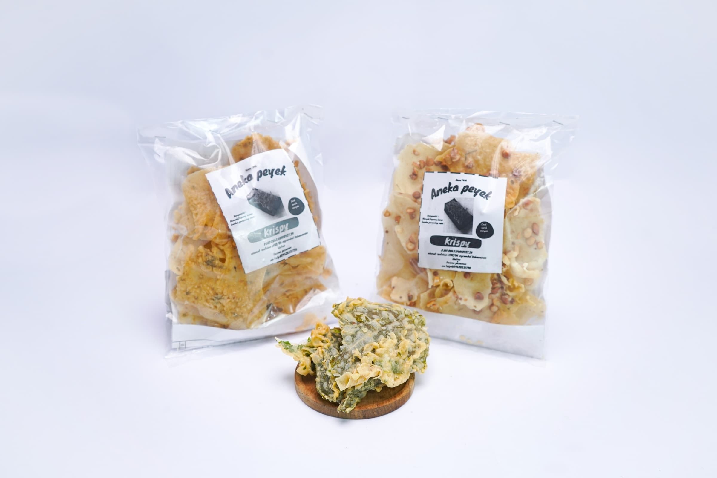 Kripik peyek dengan cita rasa yang gurih dan renyah. Dibuat dengan home made dan terjamin kualitasnya. Cocok untuk dijadikan cemilan atau teman lauk makan.