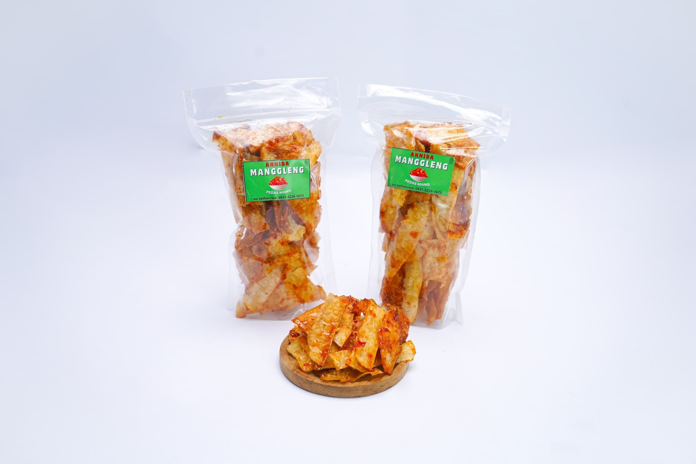 Keripik manggleng dengan cita rasa yang gurih, manis dan pedas. Dibuat secara home made dan terjamin kualitasnya. Cocok dijadikan cemilan santai dan teman ngeteh.