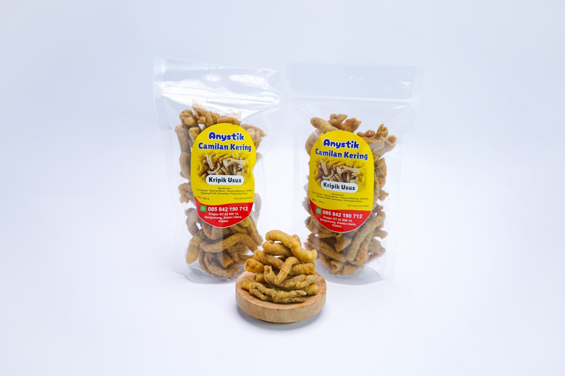 Kripik usus dengan cita rasa yang gurih dan renyah. Dibuat secara home made serta dijamin kualitas nya terjaga. Cocok untuk cemilan sehari-hari atau pelengkap lauk makan.