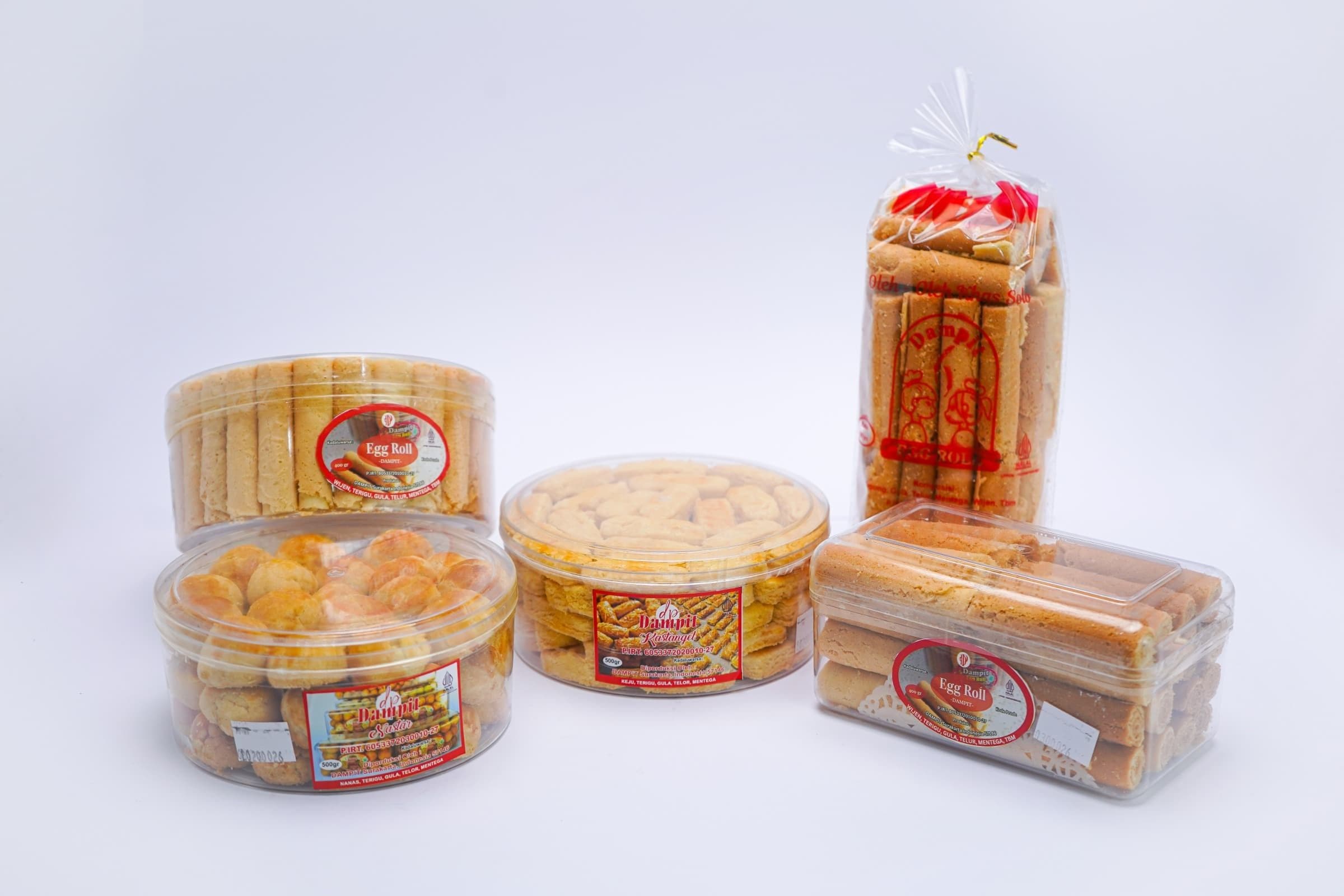 Rangkaian kue kering premium: renyahnya dampit eggroll, lumernya kastengel keju autentik, dan legitnya nastar selai buatan rumahan.