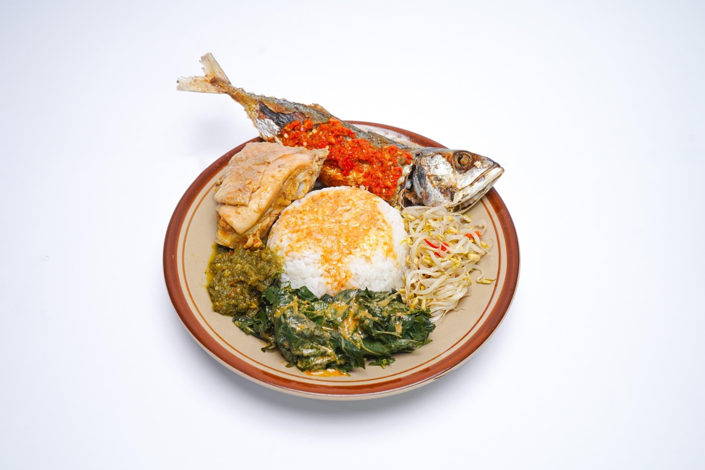 Nasi padang murah meriah, kaya rempah dan menggugah selera. Dalam seporsi piring, kamu mendapatkan nasi hangat, lauk pauk pilihan seperti pindang, sambal balado, sayur nangka dan daun singkong, dan lain sebagainya.