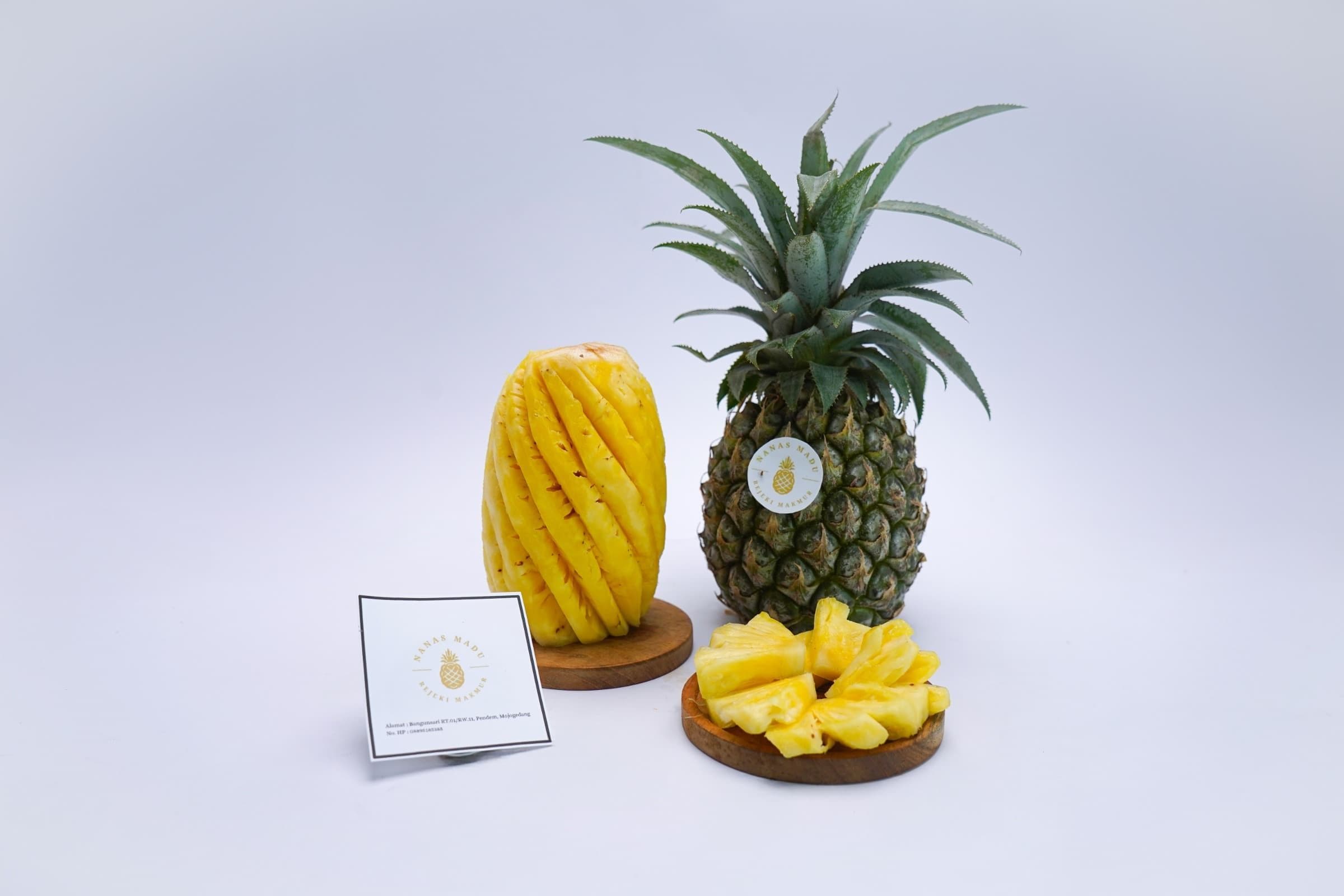 Nanas Madu dipetik saat matang sempurna, disajikan utuh atau dikupas. Dua duanya sama segar, rasa asli dari alam.