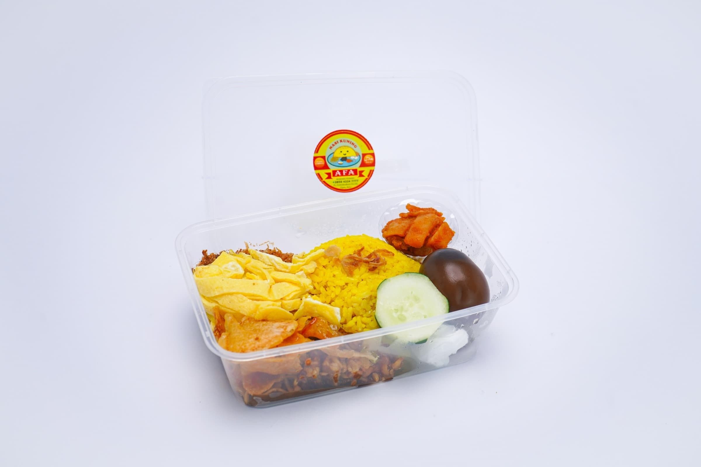 Nasi kuning khas Indonesia dengan cita rasa yang gurih dan lezat.. Disajikan lengkap dengan lauk pelengkap seperti ayam suwir, telur dadar, kering tempe, dan serundeng. Cocok untuk berbagai acara spesial atau untuk teman makan.