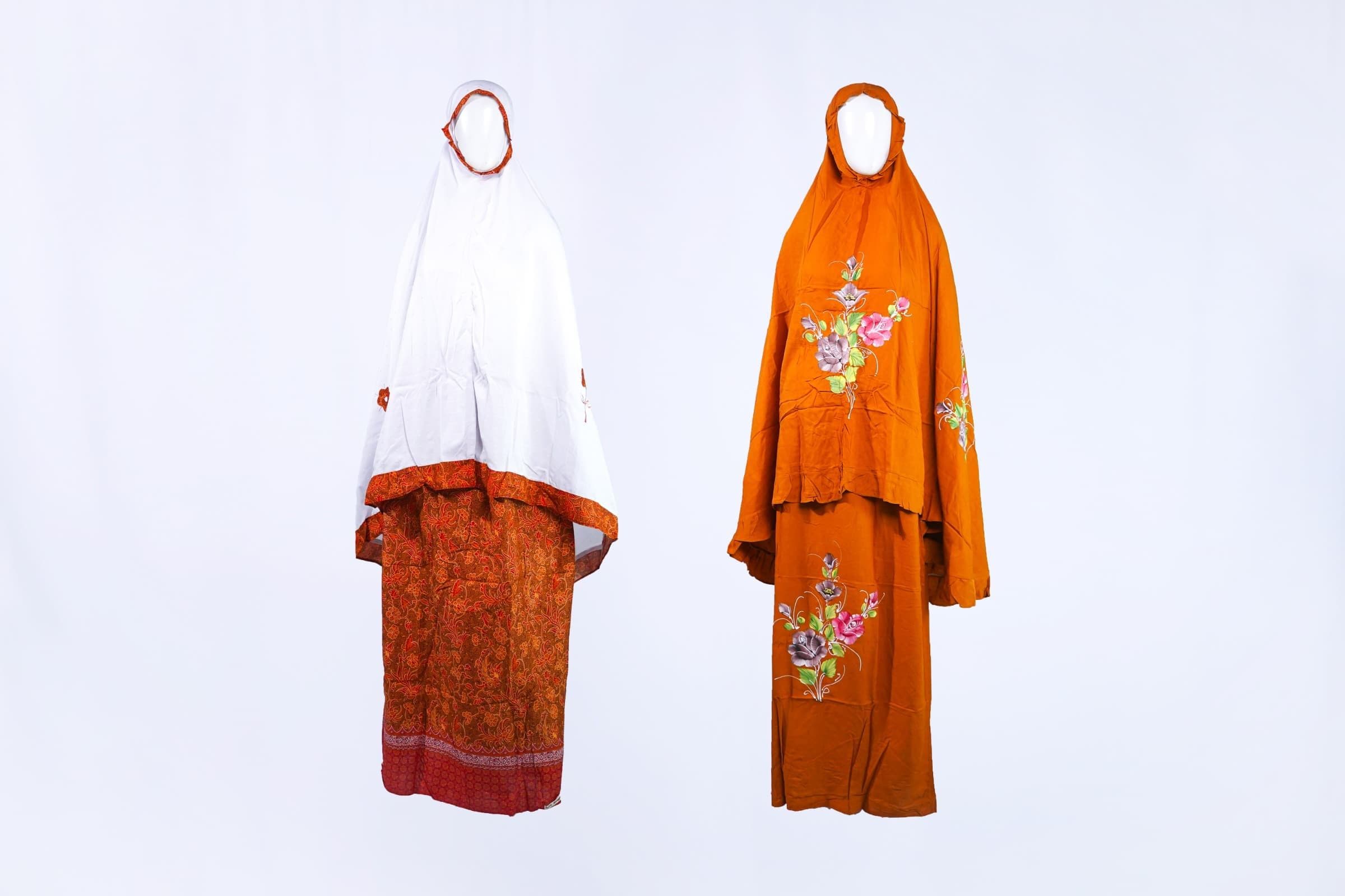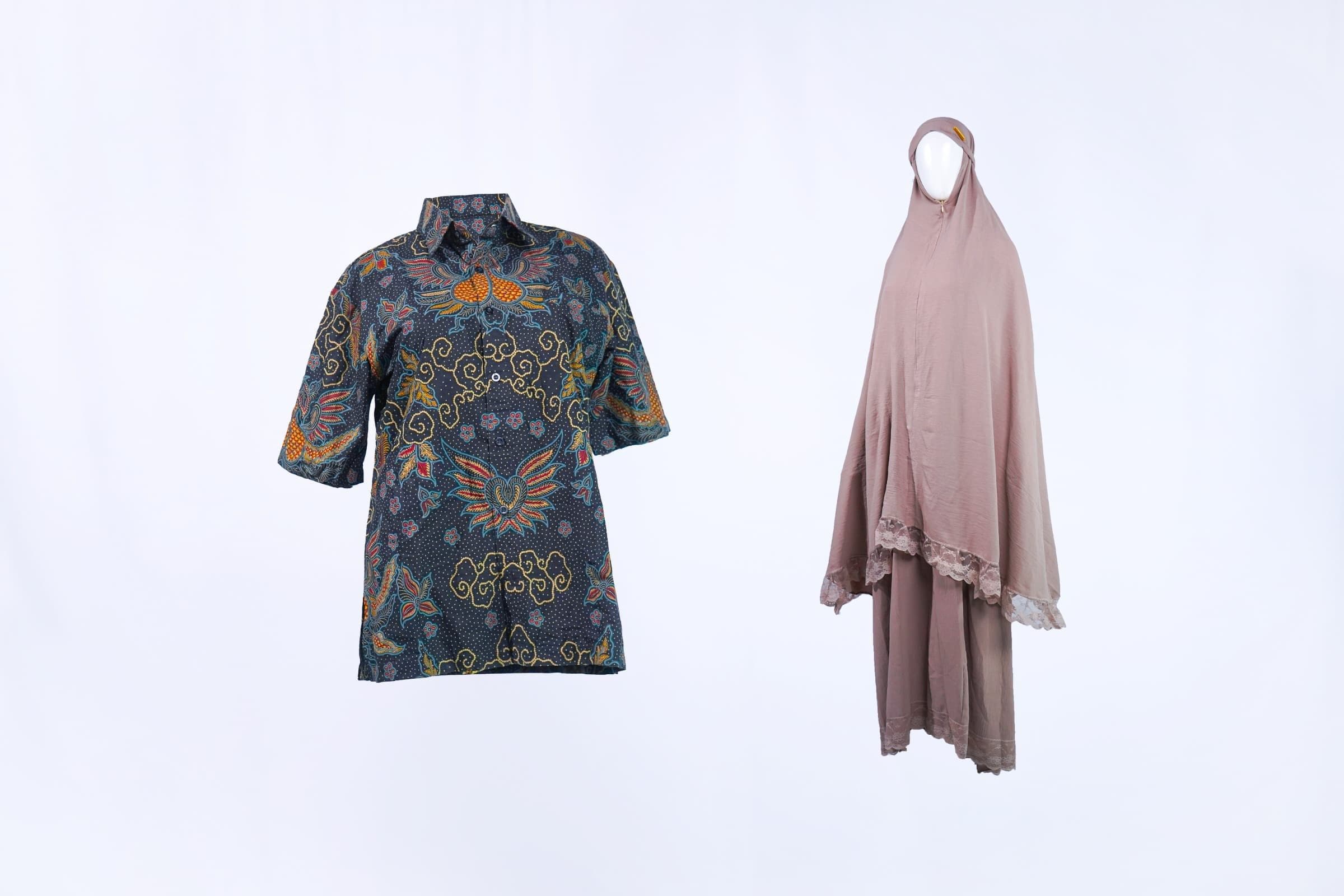 Mukena lembut bernuansa tenang & kemeja batik khas budaya kita. Bisa untuk hadiah pernikahan, hantaran, atau sekadar menyenangkan diri dan pasangan.