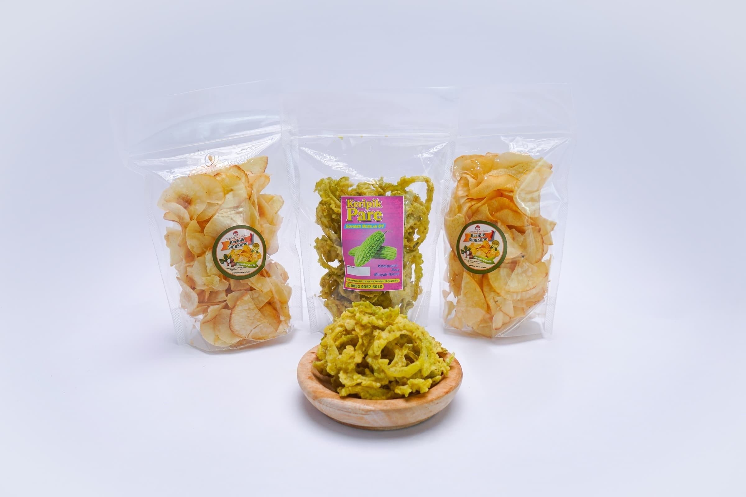 Buat kamu yang pengin ngemil versi sehat, bisa coba kripik pare dan singkong. Sehat untuk semua usia, bahkan bagi yang biasanya kurang suka pare.
